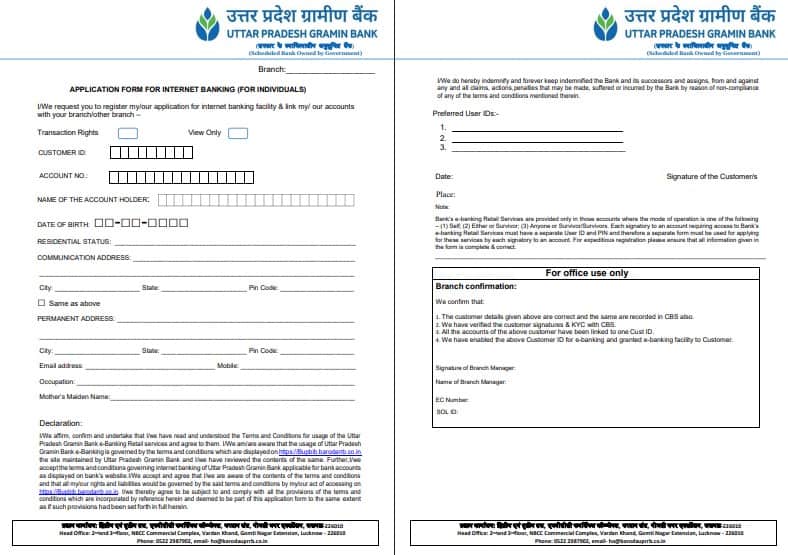 डाउनलोड उत्तर प्रदेश ग्रामीण बैंक इंटरनेट बैंकिंग एप्लीकेशन फॉर्म